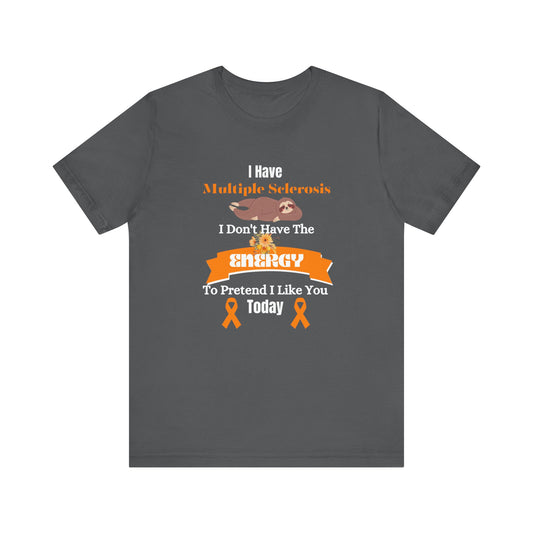 I Have Multiple Sclerosis I Don't Have the Energy to Pretend I Like You Today Multiple Sclerosis Awareness Sarcastic Sloth Awareness Shirt