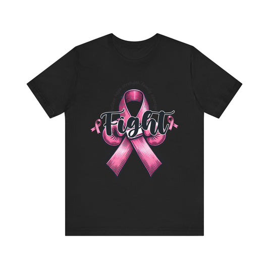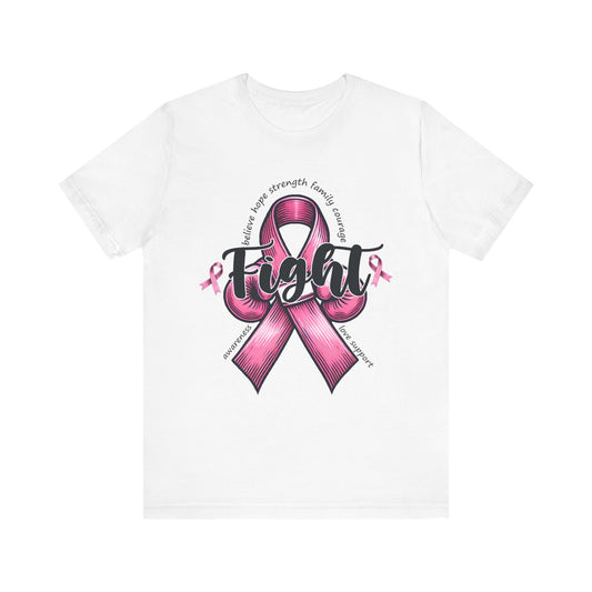 Fight Breast Cancer Awareness Unisex Jersey Short Sleeve Tee with Pink Ribbon