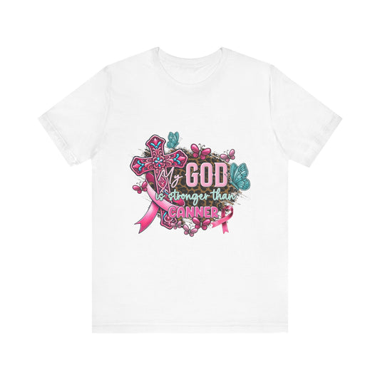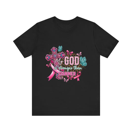 My God is Stronger Than Cancer Breast Cancer Awareness Unisex Jersey Short Sleeve Tee