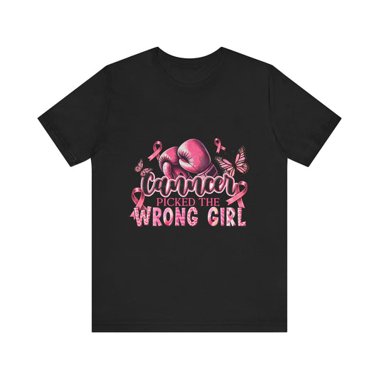 Cancer Picked the Wrong Girl Breast Cancer Awareness Unisex Jersey Short Sleeve Tee