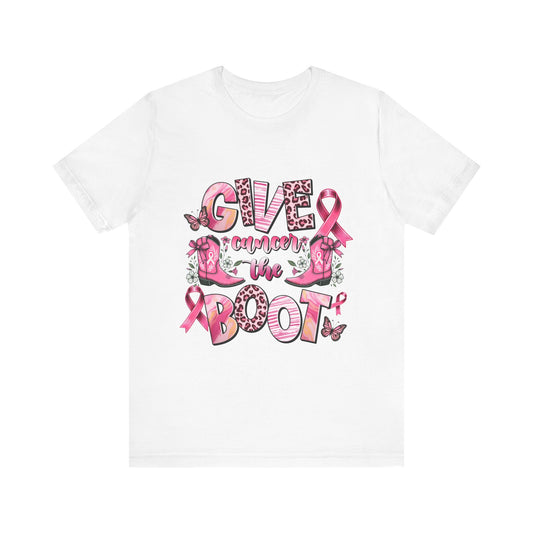 Give Cancer the Boot Breast Cancer Awareness Unisex Jersey Short Sleeve Tee