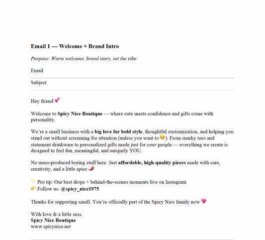 Spicy Nice Email Drip Campaign – Done-For-You Welcome Nurture Emails (B2C + B2B)