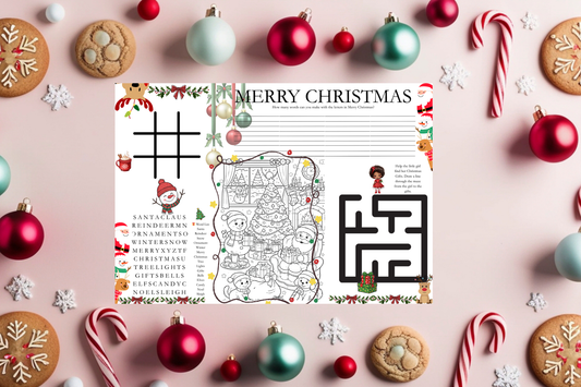 Kids Christmas Activity Mat | Holiday Printable for Kids | Christmas Games & Coloring | Word Search | Digital Download