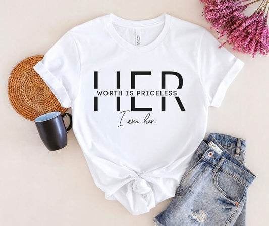 “Her Worth is Priceless. I Am Her.” – T-Shirt Transfer