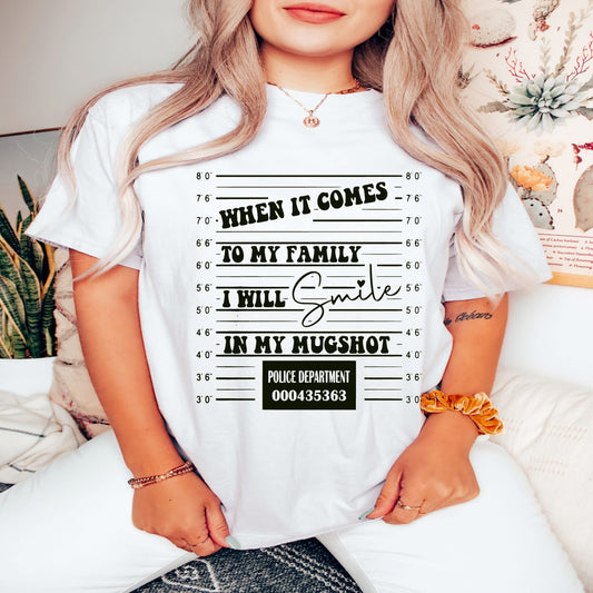“When It Comes to My Family, I Will Smile in My Mugshot” – Screen Print Transfer
