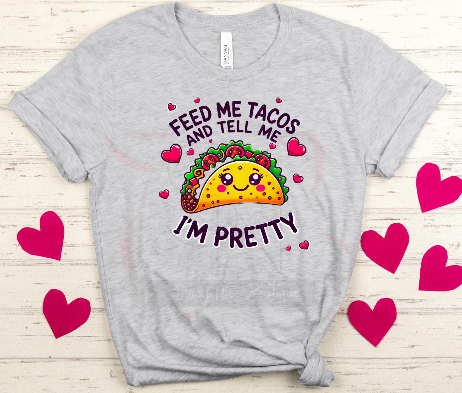 Looking for the perfect Valentine's Day gift? Look no further! Our Feed Me Tacos and Tell Me I'm Pretty t-shirt is not only stylish but also conveys a message of love and appreciation. Show your partner how much you care with this fun and unique t-shirt.