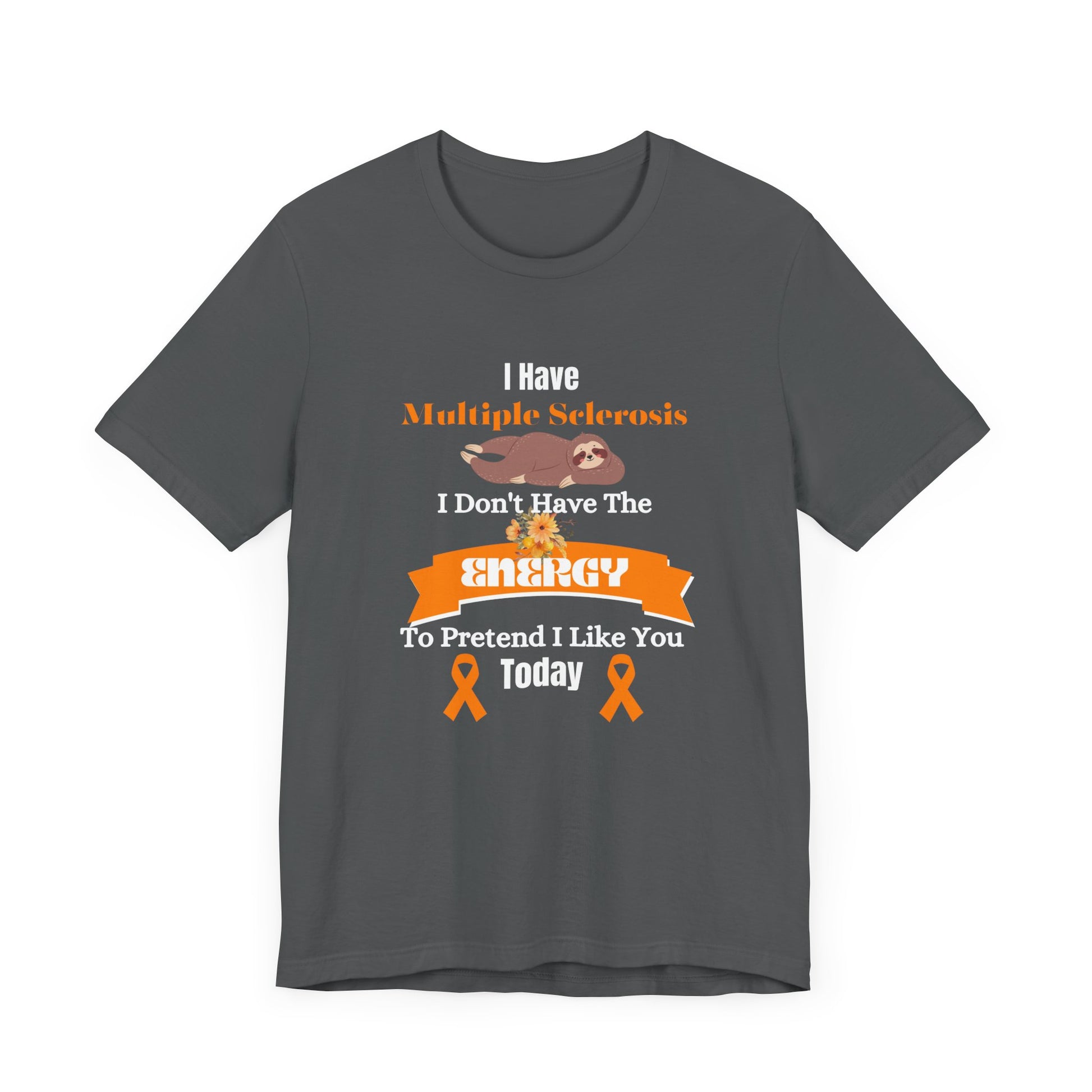 I Have Multiple Sclerosis I Don't Have the Energy to Pretend I Like You Today Multiple Sclerosis Awareness Sarcastic Sloth Awareness Shirt