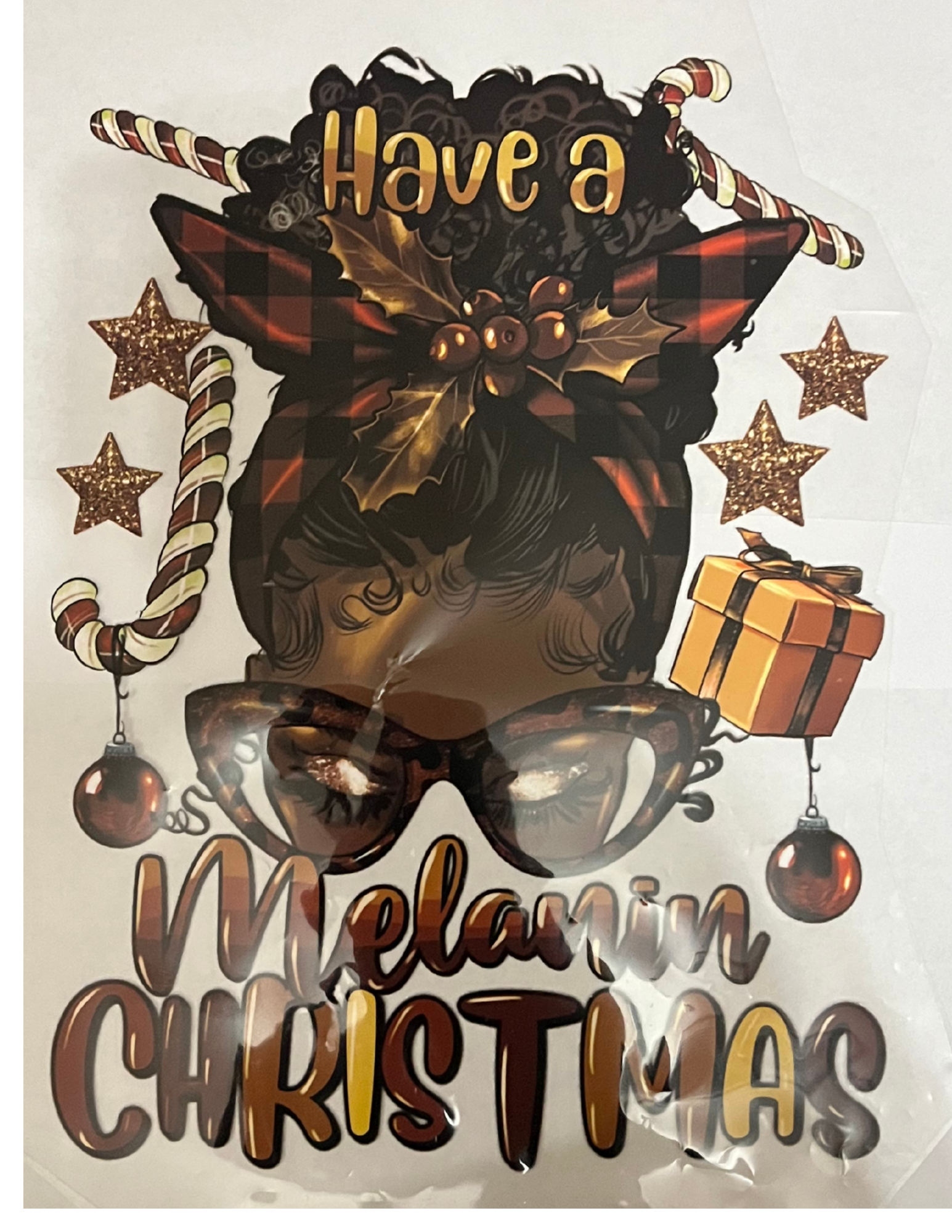 “Have a Melanin Christmas” DTF Iron-On Transfer | Messy Bun Black Woman Holiday Design