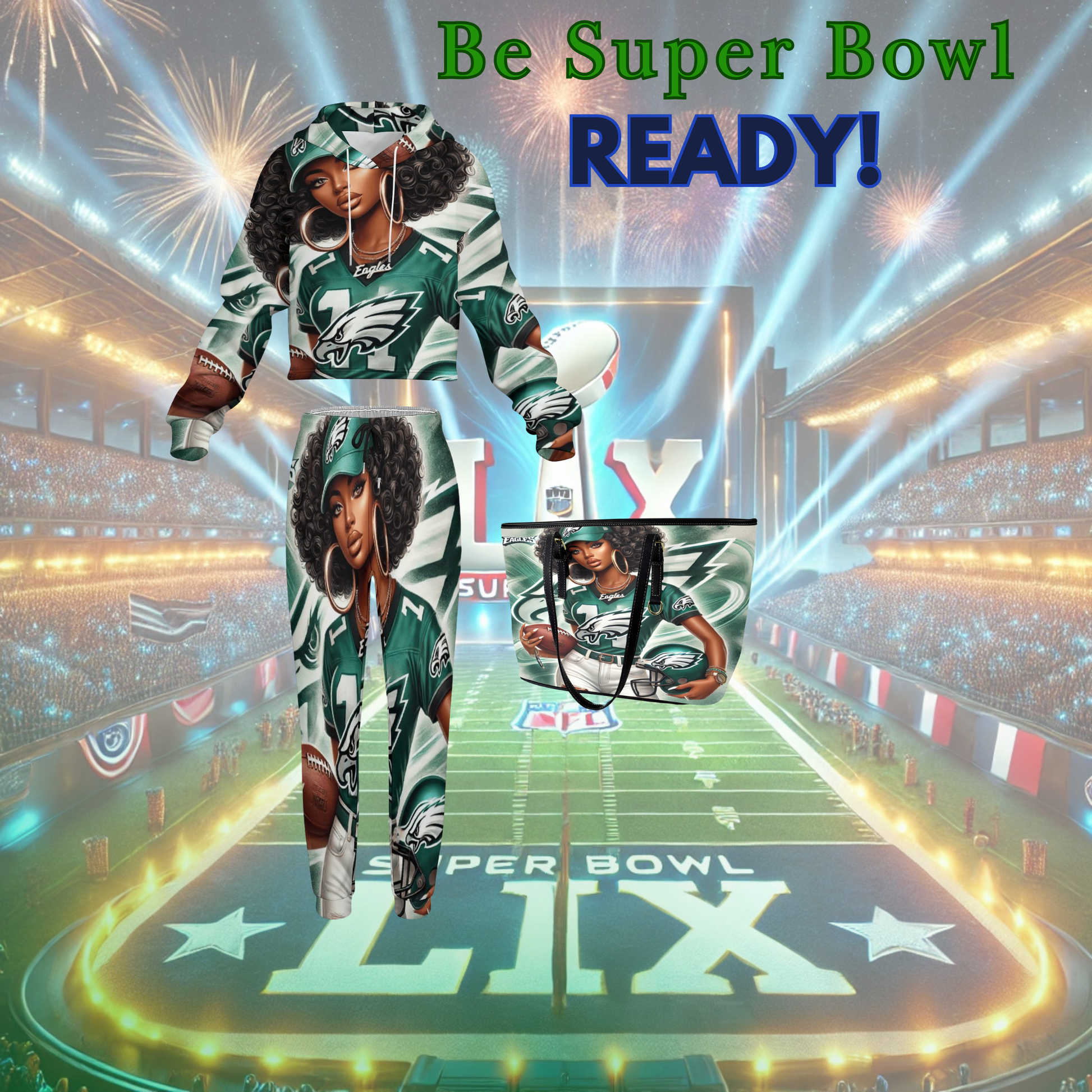 Get ready to show off your love for the Philadelphia Eagles with our inspired athletic wear! This collection includes sweatpants, a crop sweatshirt, and an all-over t shirt, all featuring designs inspired by the beloved team. Not only will you look stylish, but you'll also be supporting your favorite team. Go Eagles!