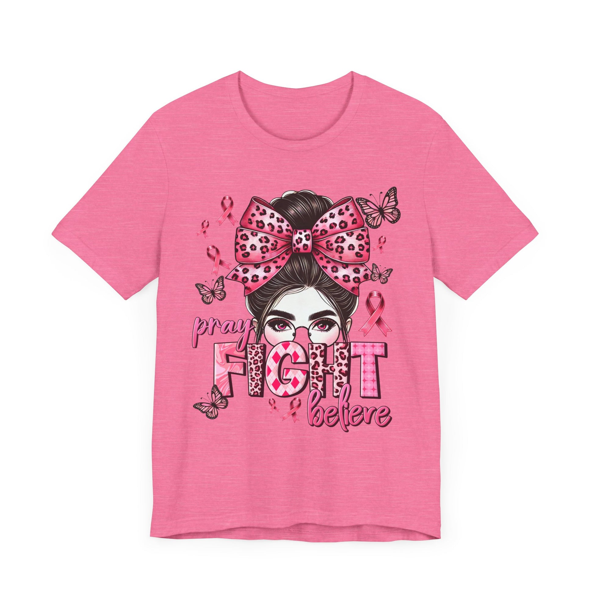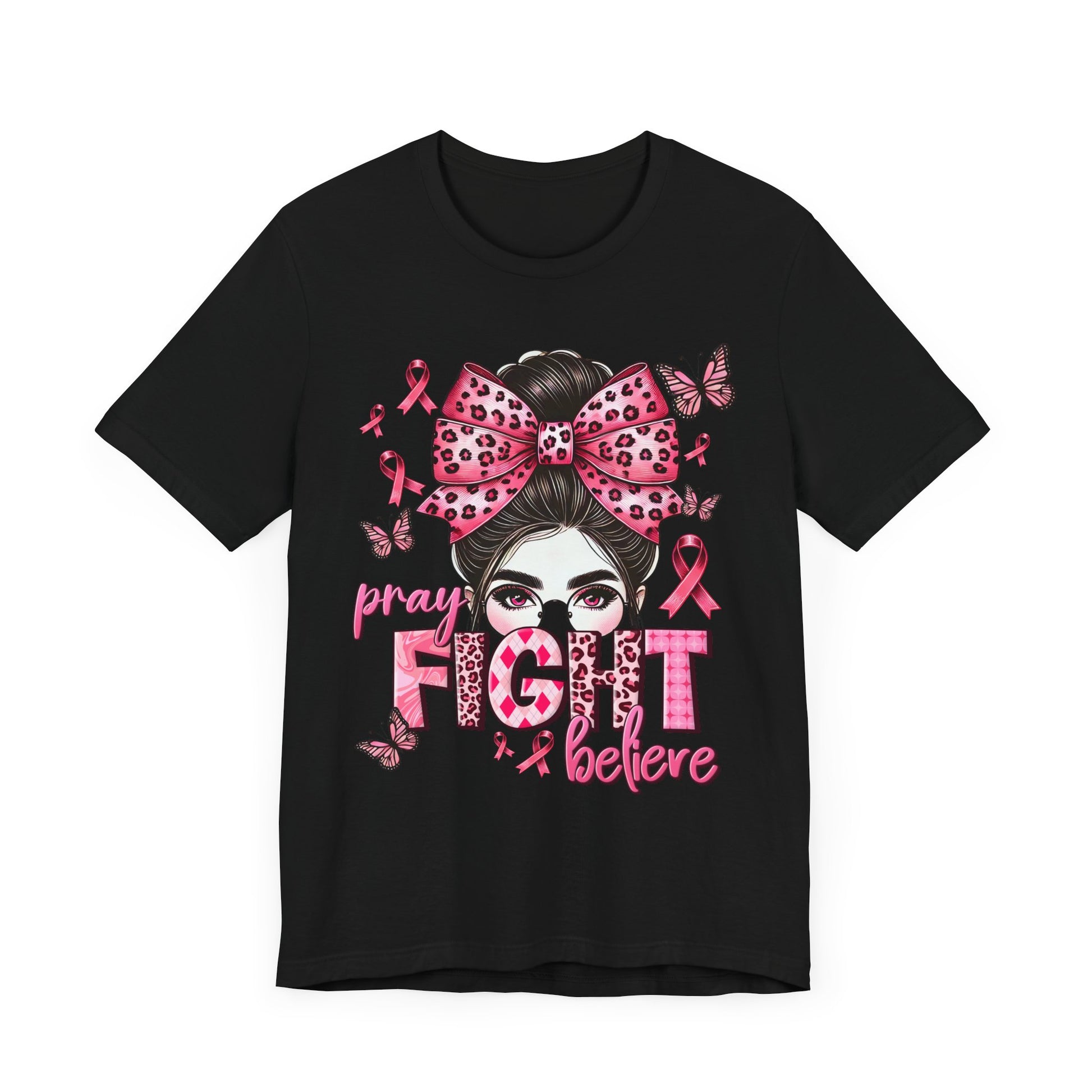 Pray Fight Believe Breast Cancer Awareness Unisex Jersey Short Sleeve Tee