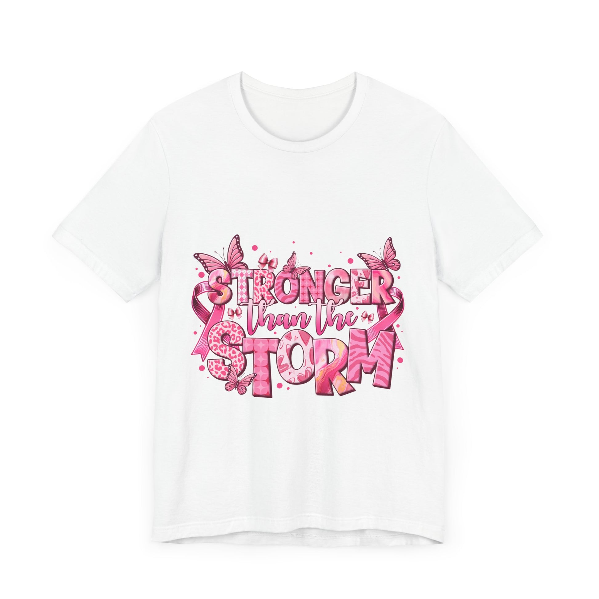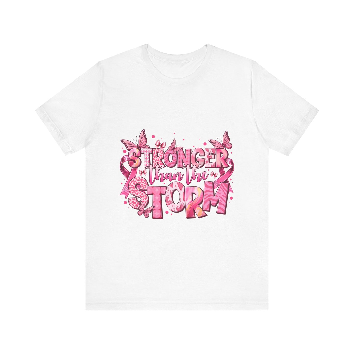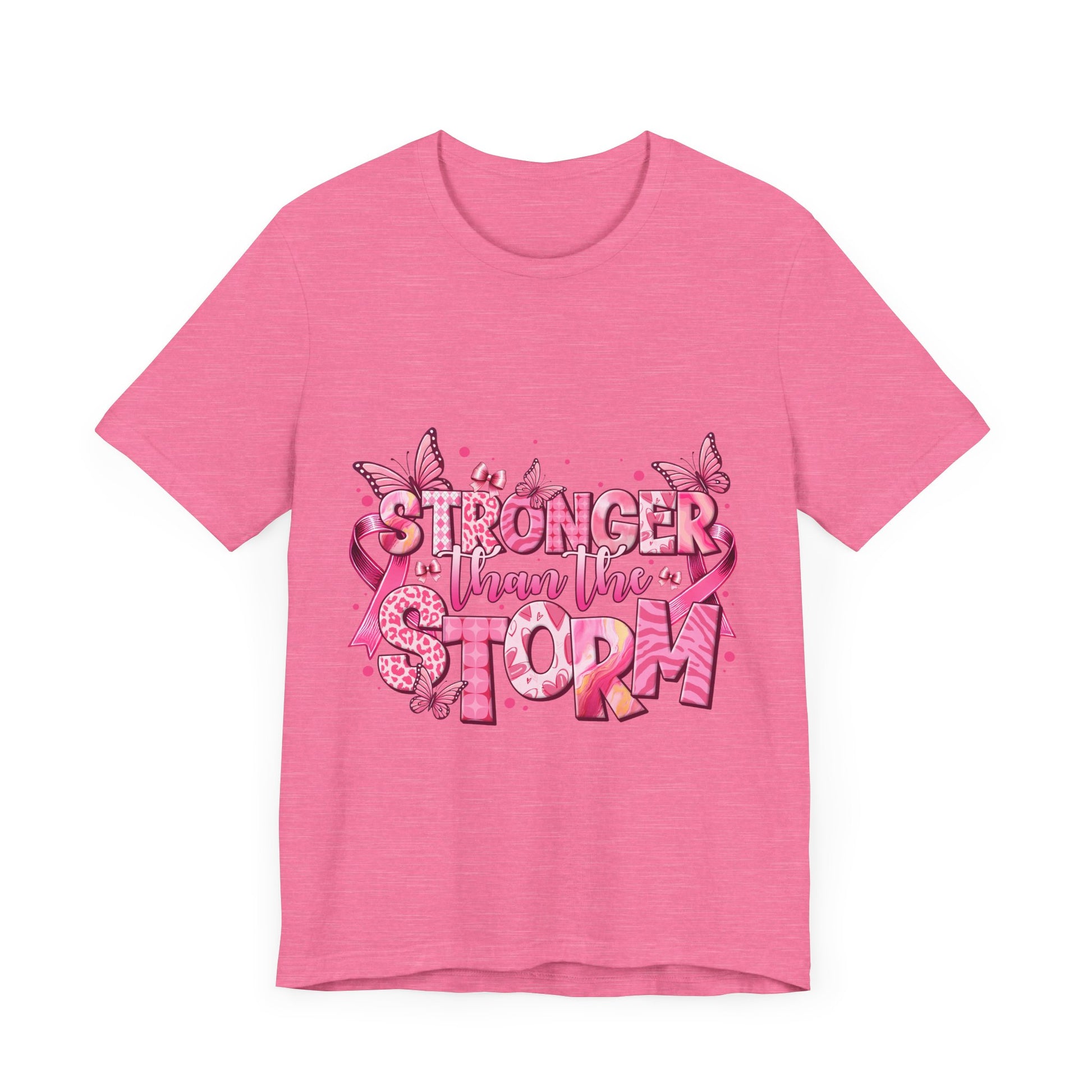 Stronger than the Storm Breast Cancer Awareness Unisex Jersey Short Sleeve Tee