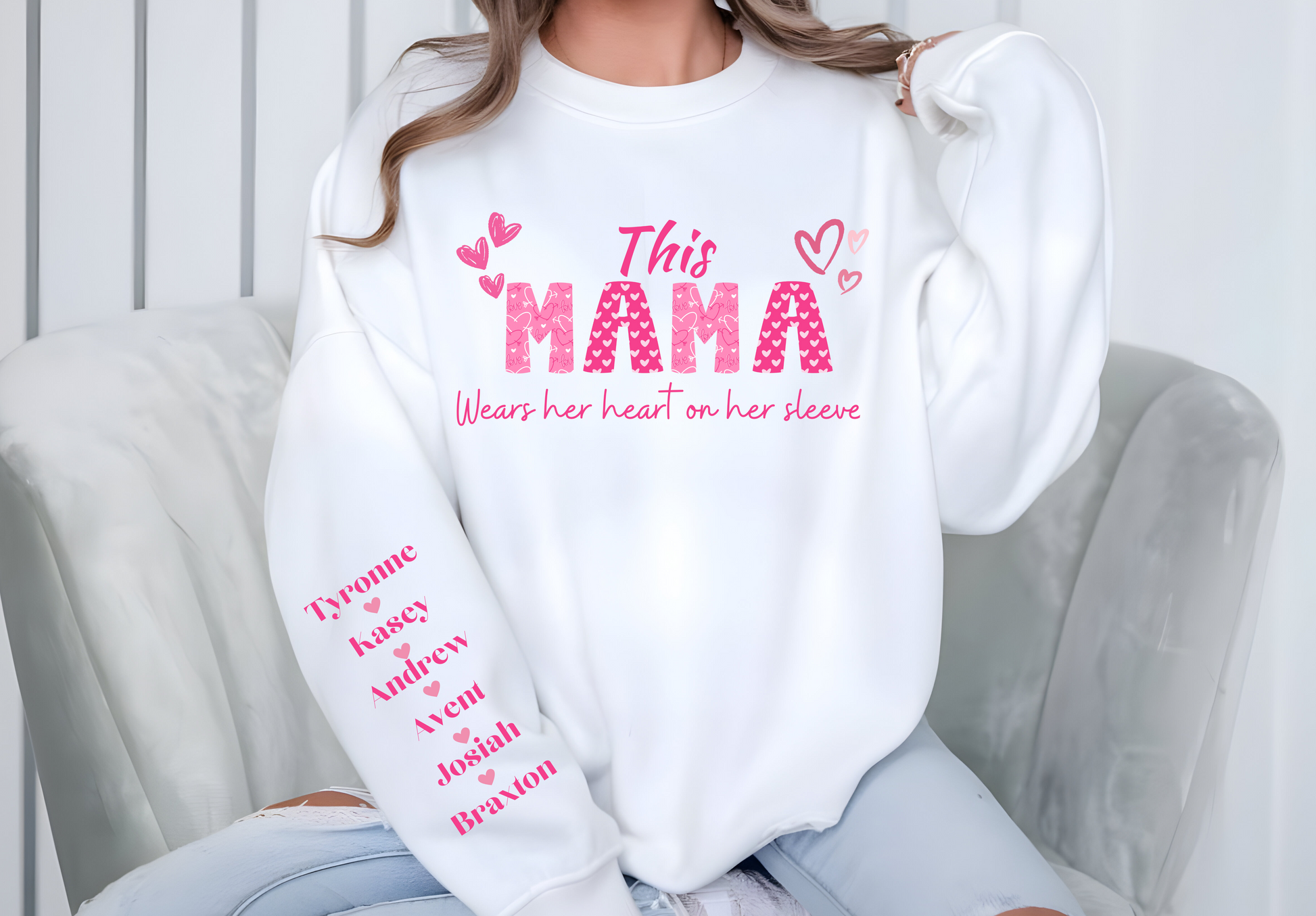 Proudly and fashionably express your love for your little ones with our Custom Mama Shirt! Made from soft and comfortable Gildan 100% cotton, this shirt features your children's names on the sleeves in puff vinyl. Show off your mama status with confidence and style!