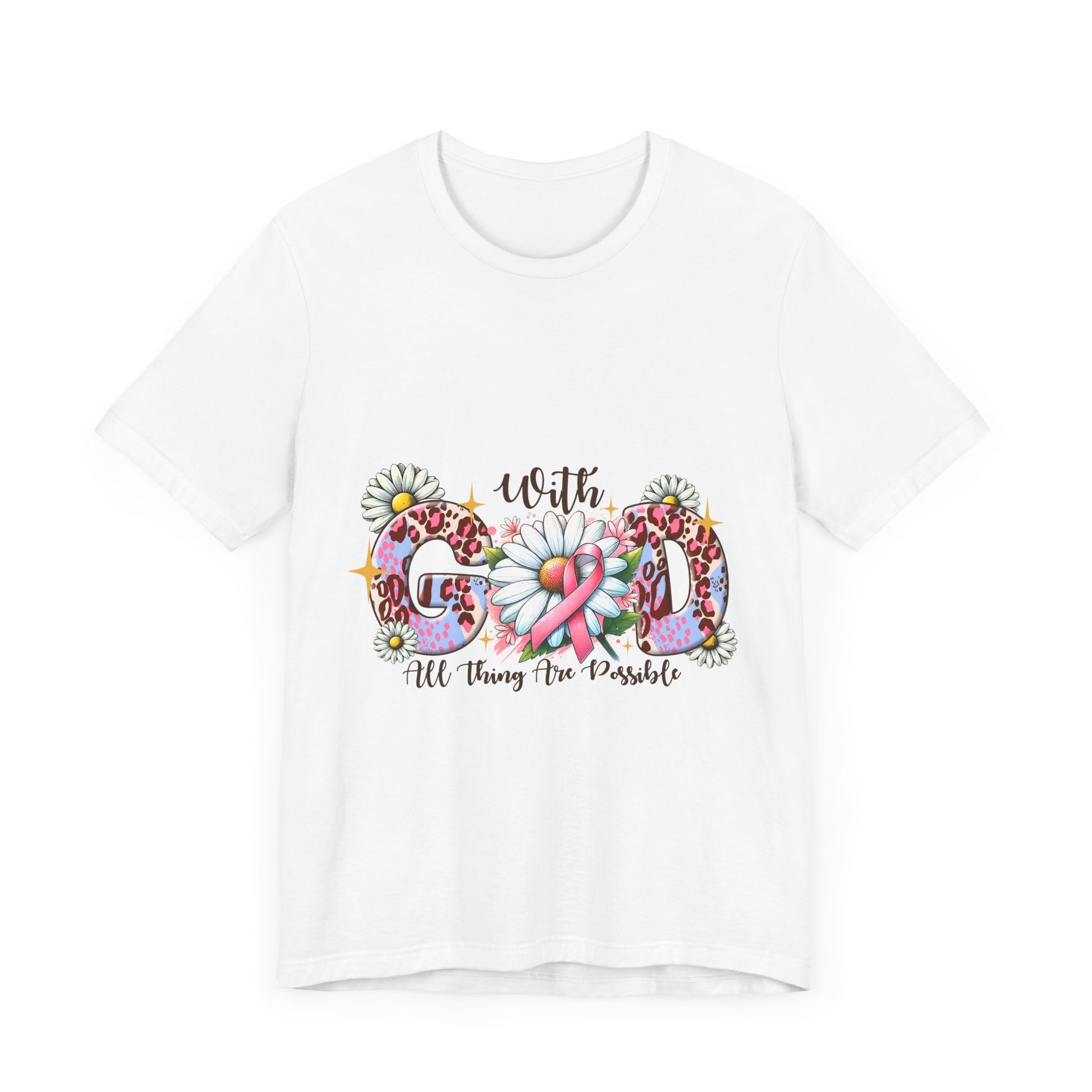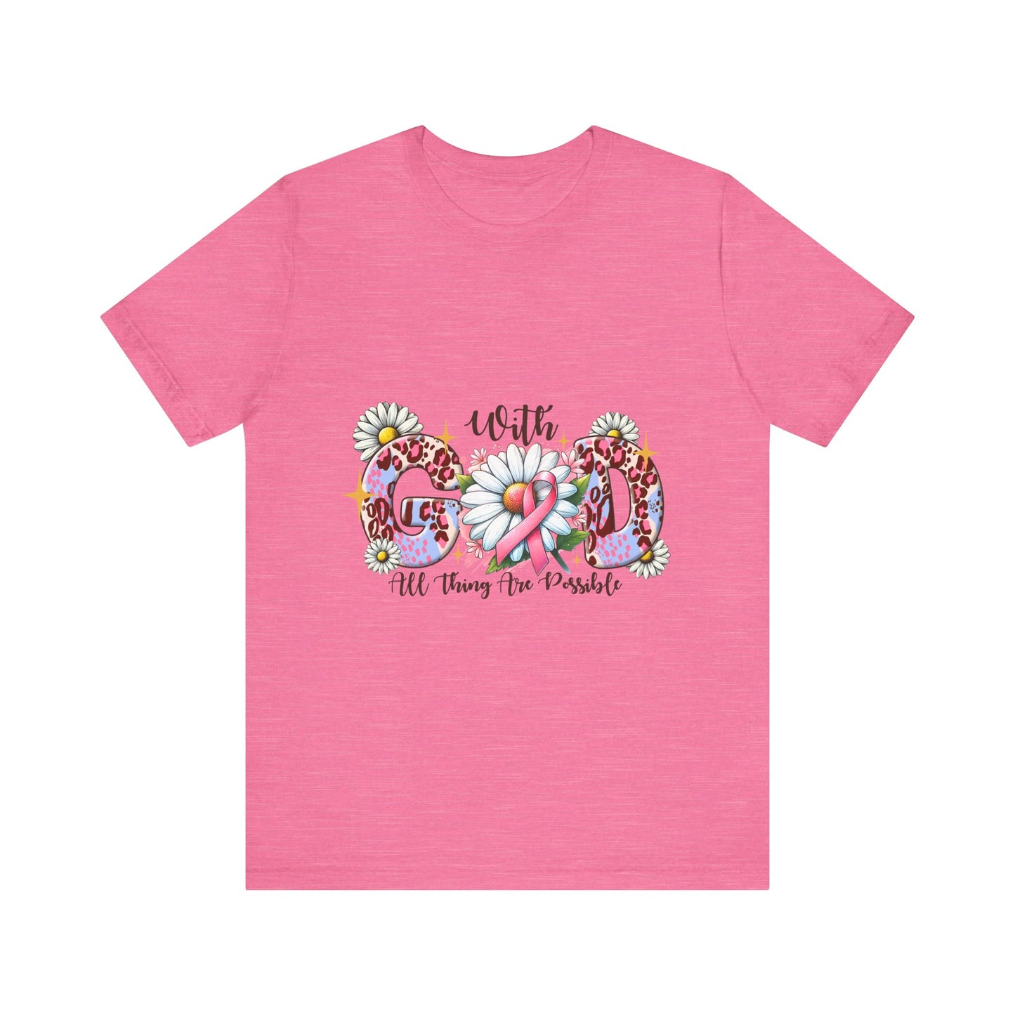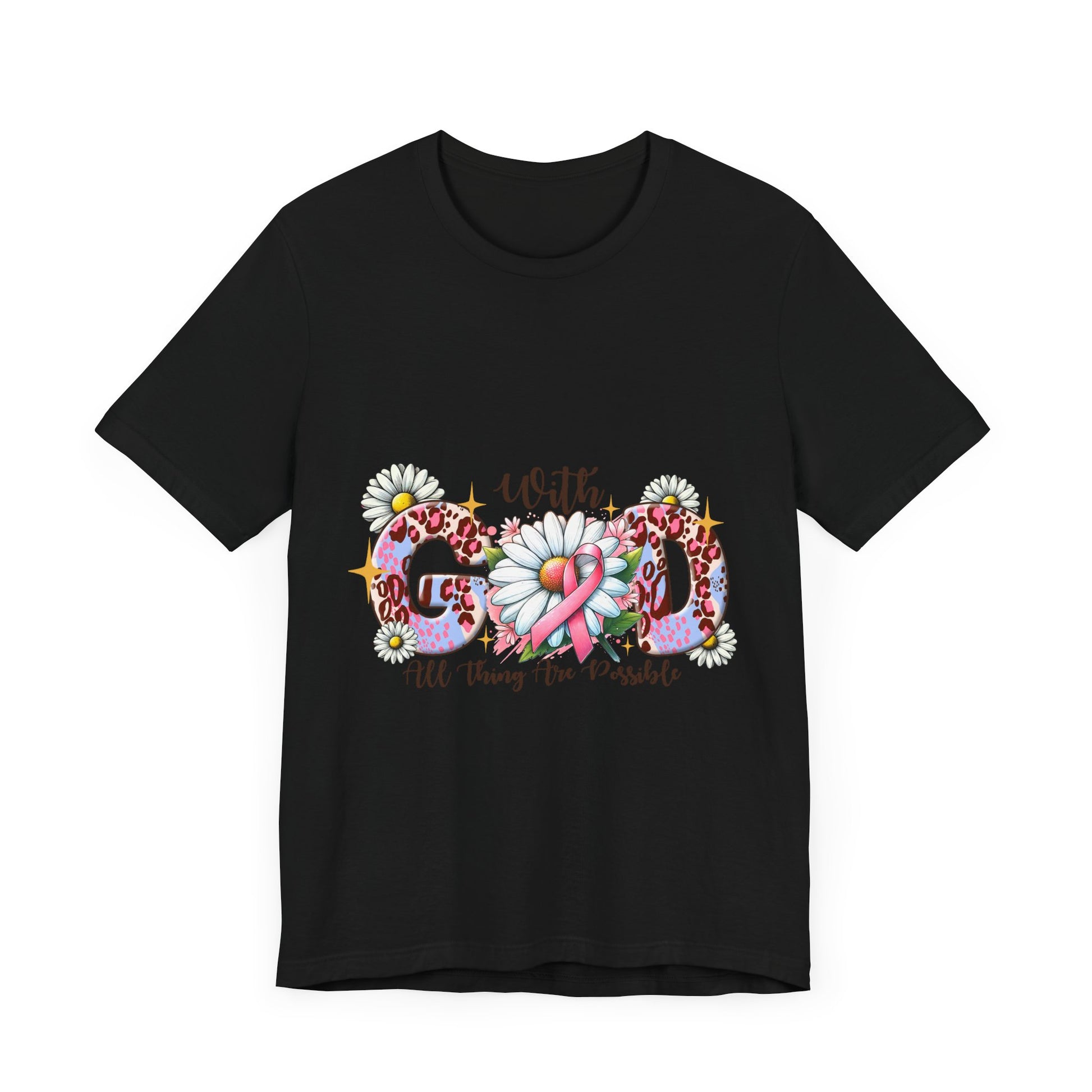 With God All Things Are Possible Breast Cancer Awareness Unisex Jersey Short Sleeve Tee